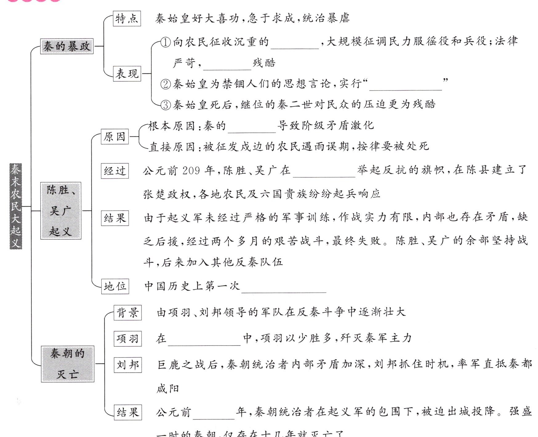 赋税 刑罚 焚书坑儒 暴政 大泽乡 农民大起义 巨鹿之战 207
