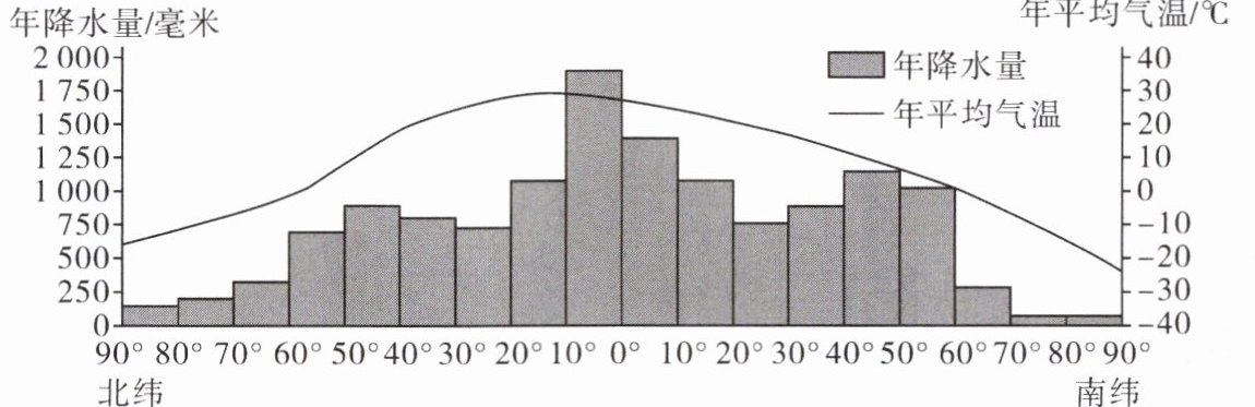 读全球降水与气温随纬度变化的图,完成 7~8 题。