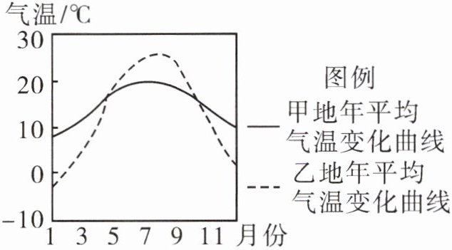 9. 读下图,下列关于甲、乙两地气温年变化的叙述,正确的有(