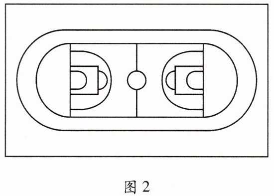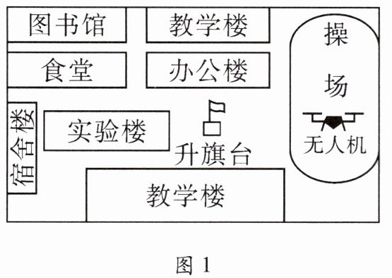 学校即将举行运动会队形演练,为测试拍摄效果,小明利用无人机拍摄了两张照片。读根据拍摄结果绘制的校园平面示意图(见图1)和操场平面示意图(见图2),完成10~12题。