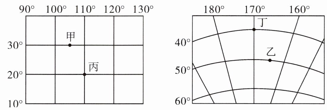 纬度地区,丁地位于中
