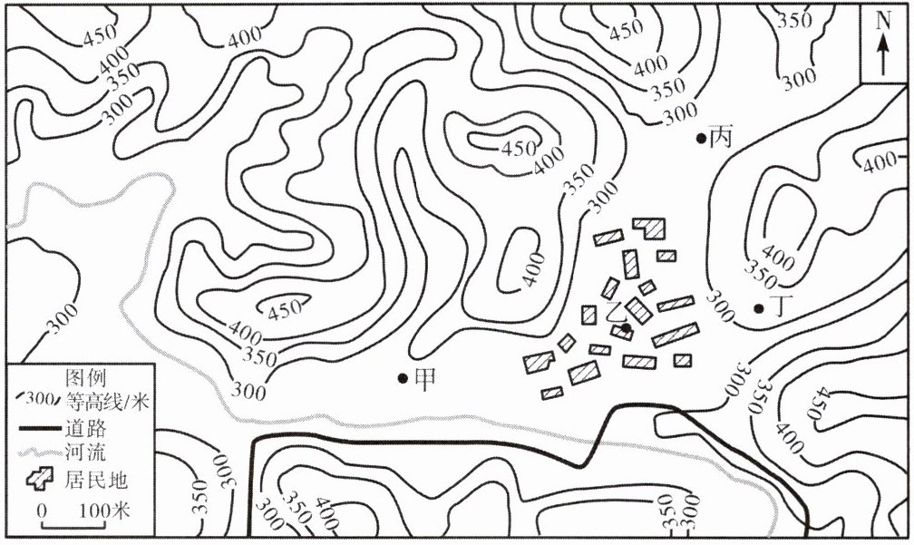 (2024·广东省)近年来,我国物流业迅速发展,快递点进村已成为新的趋势。下图是中国北方地区某村及其周边等高线地形图。读图,完成6~7题。