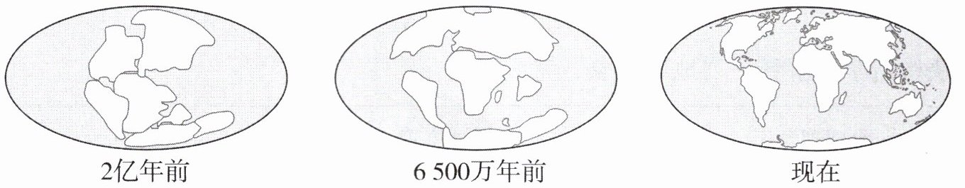 读大陆漂移过程(模拟)示意图,完成4~6题。