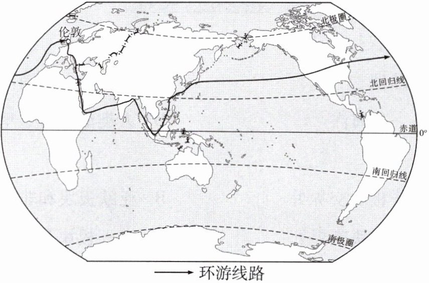 (1)福格的环游线路所经大洲中,地跨南北半球的有