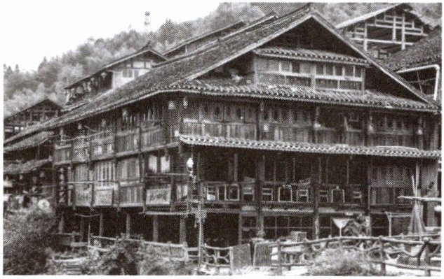 贵州西江千户苗寨是目前我国最大的苗族聚居村寨。整个村寨依山而建,集中连片,房屋以木质结构为主,外观为风格独特的吊脚楼(如下图所示)。2023年7月10日,寨区突发火灾,过火面积达450平方米。读图,完成9~10题。