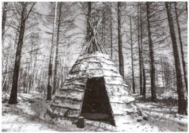 我国鄂伦春族主要生活在大小兴安岭附近。20世纪50年代前,鄂伦春族的生产方式以渔猎为主,其传统聚落属游居类型。“斜仁柱”(如下图所示)是其游居时期的主要民居形式,通常用白桦木杆搭建,冬季用兽皮、夏季用桦树皮等交替进行包裹围合成简单的“墙体”。读图,完成7~8题。