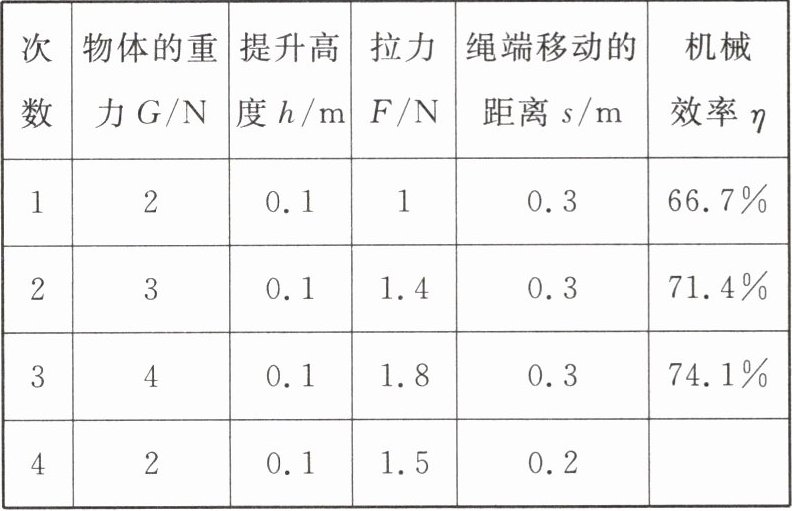 (4)若不计摩擦和绳重,用第 1 次实验的装置以 $ 0.1m/s $ 的速度匀速提起 $ 5N $ 的物体,拉力的功率是