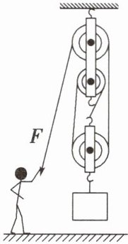 15. 工人用图示装置在$10s$内将质量为$50kg$的货物匀速提升$2m$,此过程中拉力的功率为$120W$,绳重和摩擦忽略不计。($g$取$10N/kg$)
