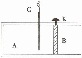 8. 如图所示,B是一个被销钉锁住的活塞,气缸A密封有压缩空气,C是一支温度计。若活塞与气缸壁之间没有摩擦,当把销钉K拔出后,将观察到活塞向右移动,温度计的示数____(选填“变大”“变小”或“不变”),原因是____。