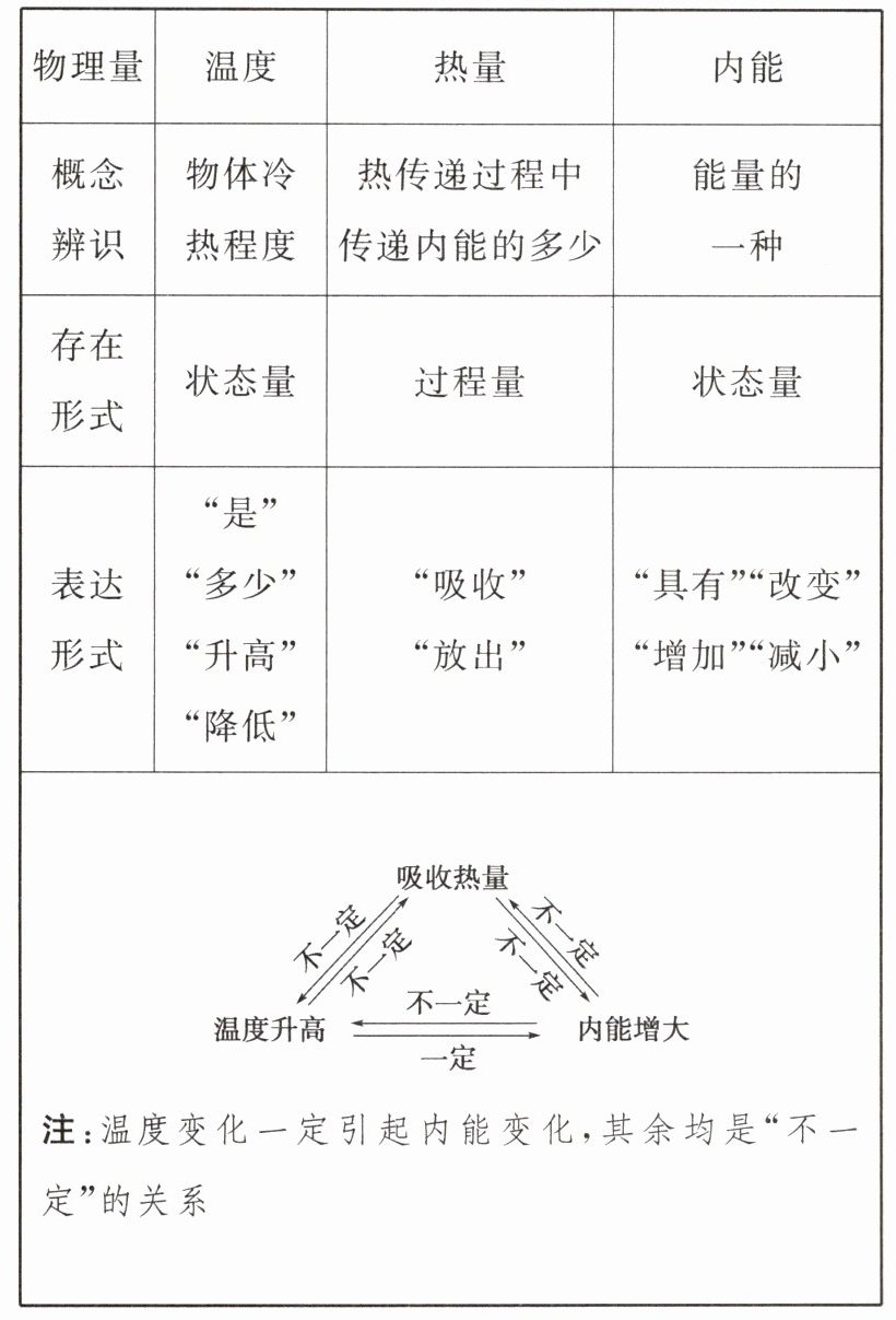 注:温度变化一定引起内能变化,其余均是“不一定”的关系