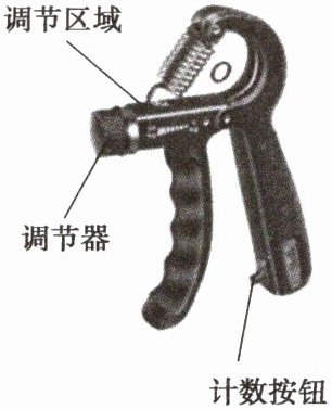9. 健康的生活既要注意平衡膳食,还要积极参加体育锻炼。如图所示为可调式握力器,可用于锻炼手部肌肉。锻炼时只要抓住左手柄,用力抓紧使其碰触右手柄上的计数按钮,即可完成一个握力动作。