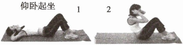8. 如图所示,质量为 $ 50 kg $ 的同学在做仰卧起坐运动。若该同学上半身的质量约为全身质量的 $ \frac{3}{5} $,则她上半身的重力约为