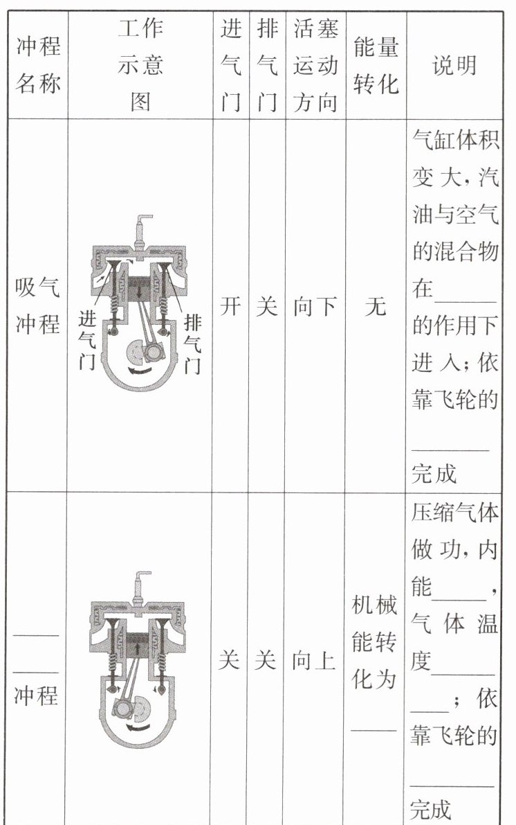 2. 汽油机四个冲程的工作特征。