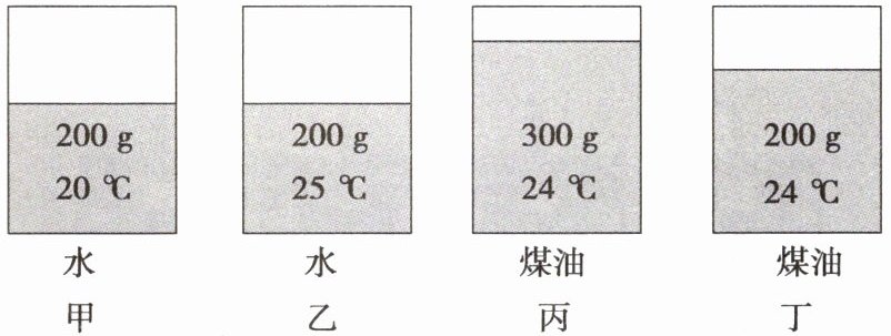 D.丙容器中煤油的内能小于丁容器中煤油的内能