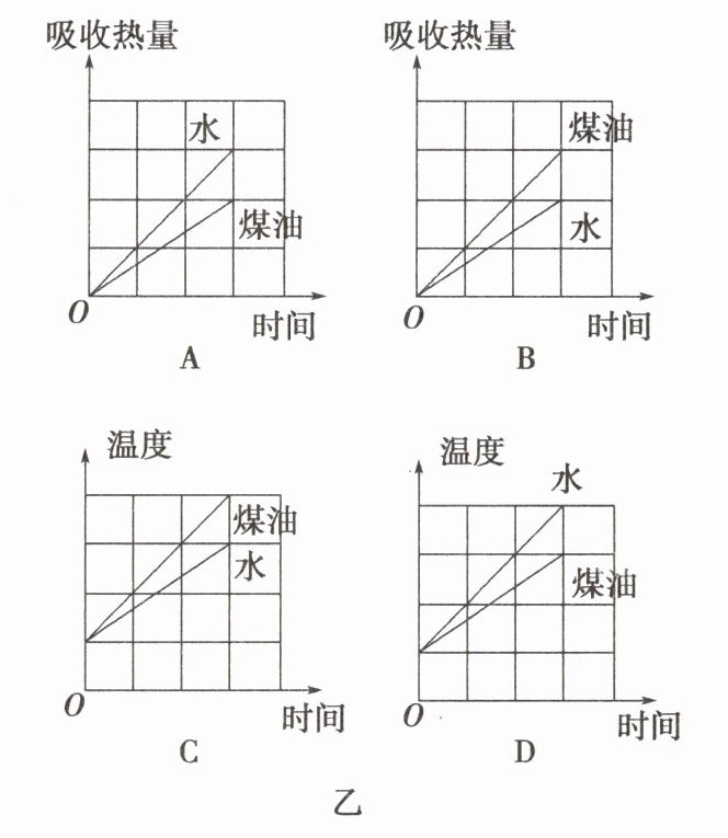 (1)在图甲中除了所给的实验器材外,还需要的测量工具有天平和______。加热过程中,水和煤油吸收热量的多少是通过______来判断的。