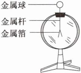 5.用丝绸摩擦过的玻璃棒接触验电器的金属球,观察现象。
