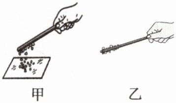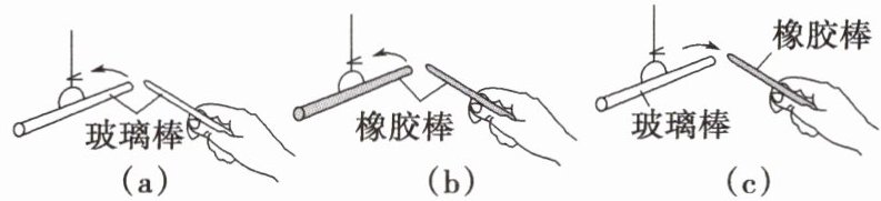 1.观察用丝绸摩擦玻璃棒和用毛皮摩擦橡胶棒来吸引轻小物体的实验现象(如图)。