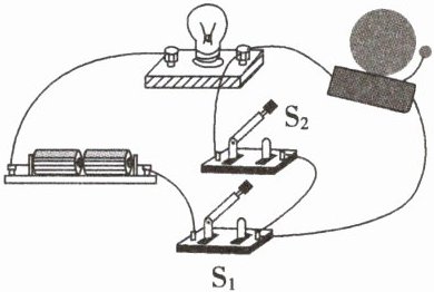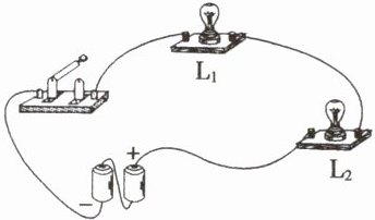 2. 取两节干电池、两个灯泡、一个开关、若干导线,连成一个串联电路。