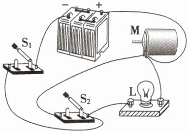 D.同时闭合 $ S_1 $、$ S_2 $,灯泡 $ L $ 和电动机 $ M $ 并联
