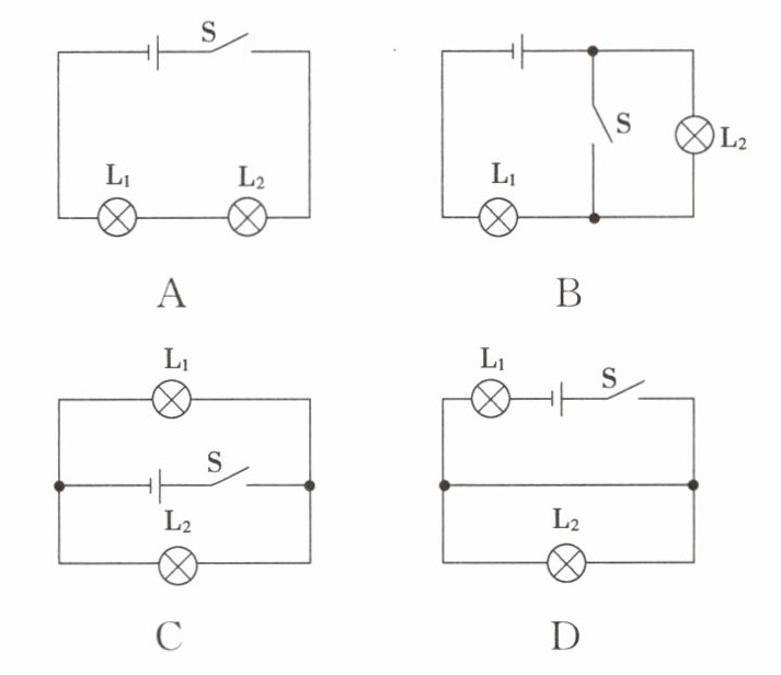 )。A.开关 $ S_1 $ 只控制灯泡 $ L $
