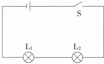 (2) 连接好电路后闭合开关 $ S $,小慧发现 $ L_1 $、$ L_2 $ 两只灯泡都不亮,她用手按一下灯泡 $ L_1 $,$ L_1 $、$ L_2 $ 仍然不亮,按一下灯泡 $ L_2 $,两灯都亮,松开手两灯又都不亮,则故障可能是