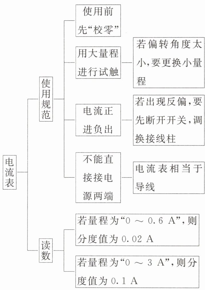 注意:①电流表一定要串联在电路中;②不允许将电流表直接连到电源的两极上。