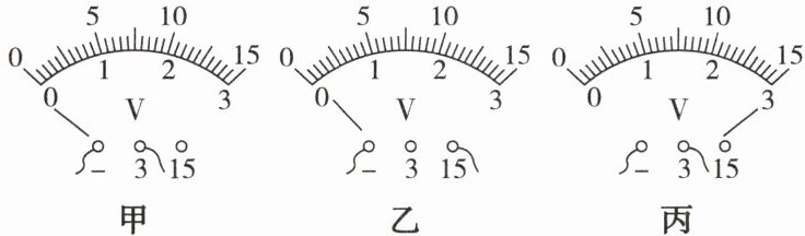 6. 用已调零的电压表测量电路中某部分电路两端电压时,试触过程中发现电压表指针如图所示,请指出电压表出现的问题。