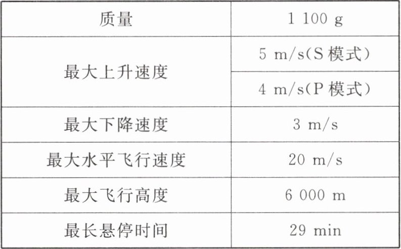 N。(2)在 P 模式下,无人机以最大上升速度匀速上升 100 m 所需要的时间 $ t = $