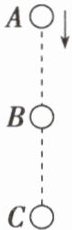 6. 在自由下落过程中物体运动速度会越来越快。如图所示,一个物体由 $ A $ 点自由下落,相继经过 $ B $、$ C $ 两点,已知 $ AB = BC $,物体在 $ AB $ 段重力做功为 $ W_{1} $,做功功率为 $ P_{1} $;在 $ AC $ 段重力做功为 $ W_{2} $,做功功率为 $ P_{2} $。则下列关系正确的是(