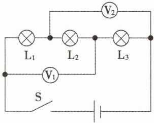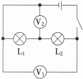 5. 如图所示电路,当开关$S$闭合时,电压表$V_1$的示数为$7.5V$,电压表$V_2$的示数为$9V$,若电源电压为$12V$,则$L_1$、$L_2$两端的电压分别为(