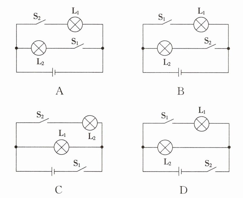 5. (2025·江门模拟)如图所示,暗盒中的两个灯泡L₁和L₂连接在同一电路中,闭合开关,下列现象可以判断两灯一定串联的是(