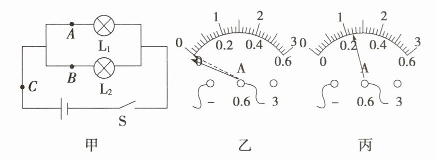 (2)小明同学在测量A处的电流时,发现电流表的指针偏转如图乙所示,原因是