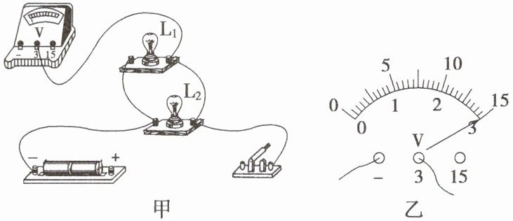(4)排除故障后,用电压表分别测量小灯泡L₁、L₂及电源两端的电压,电压表示数均如图乙所示,为