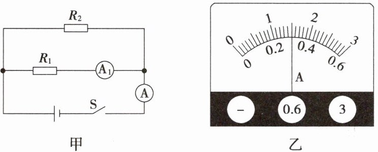 11. 如图甲所示,已知定值电阻$R_{1}$的阻值为$30\Omega$,闭合开关时整个电路正常工作,两电流表的指针都指在同一位置,示数如图乙所示。(设电源电压保持不变)