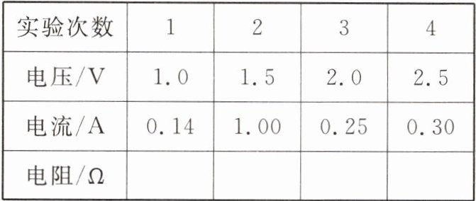 (4)调节滑动变阻器,测得实验数据如表所示。