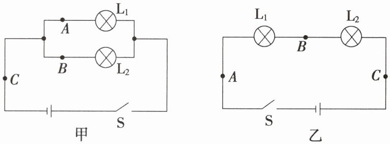 D.图甲中灯泡 $ L_2 $ 两端的电压等于图乙中灯泡 $ L_2 $ 两端的电压