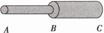 4. (2025·梅州期末)如图所示,$AB$和$BC$是由同种材料制成的长度相同、横截面积不同的两段导体,将它们串联后连入电路中。比较通过它们的电流的大小,有(