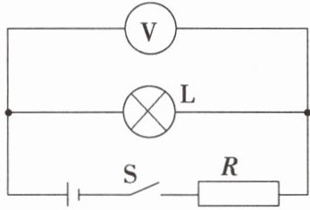 8. 如图所示的电路,电源电压为$6\ {V}$且保持不变,$R = 10\ {\Omega}$,当闭合开关$S$时,电压表的示数为$2\ {V}$。以下判断正确的是(