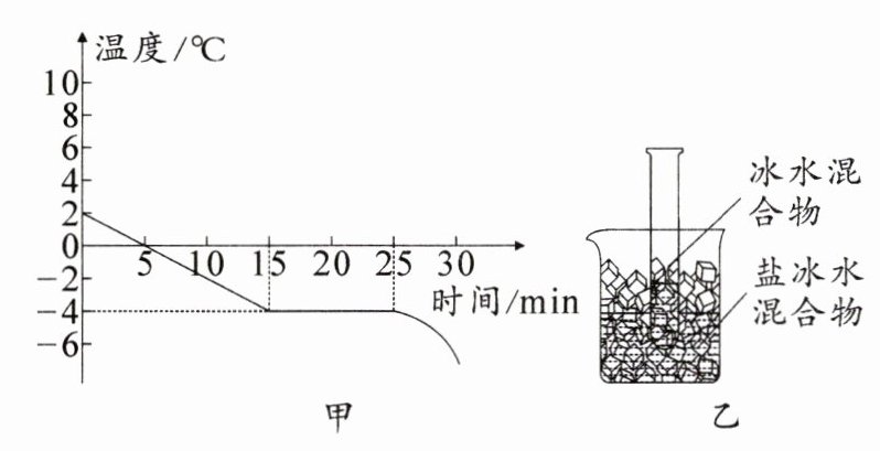 (3) 如果将一个装有冰水混合物的试管放入正在熔化的盐冰水混合物中,如图乙所示,试管内冰水混合物中的冰会