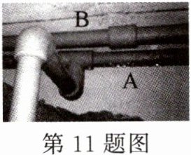 11. 小明洗澡时发现浴室的两根水管管壁上,一根布满了水珠,一根完全见不到水珠(如图),布满水珠的是