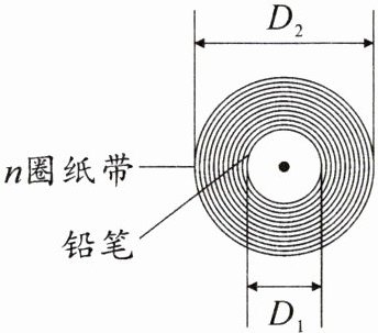 一条纸带厚薄均匀,若把纸带紧密地环绕在圆柱形铅笔上,如图所示,纸带在铅笔上环绕了$n$圈,则纸带厚度的表达式是