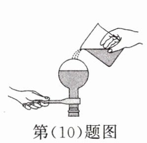 (选填“会”或“不会”)继续汽化.(10)(2025毕节期末)老师在课堂上给学生做了如图演示实验:水沸腾后把烧瓶从火焰上拿开,迅速塞上瓶塞,把烧瓶倒置并向瓶底浇冷水,结果发现已停止沸腾的水又重新沸腾.这是因为浇冷水时烧瓶内的水蒸气