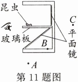 11.如图是用两块平面镜制作的能同时观察昆虫背部和腹部的观察箱.能看到昆虫在平面镜中的像,是因为光经平面镜