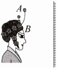 12.如图是某戏曲演员在平面镜前化妆的情景.请在图中画出演员头饰中弧线 AB 段在平面镜中的像,并画出演员通过平面镜看见头饰上 A 点的光路图.