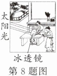8. 教材变式题 P117T1(多选)西汉的《淮南万毕术》记载:“削冰令圆,举以向日,以艾承其影,则火生.”其描述的现象如图,下列说法正确的是( )