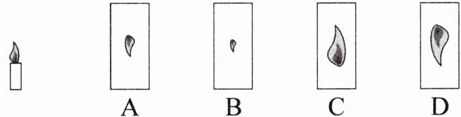 2. 如图所示的蜡烛放在凸透镜的2倍焦距之外,在透镜的另一侧调节光屏得到烛焰清晰的像,这个像是图中的(