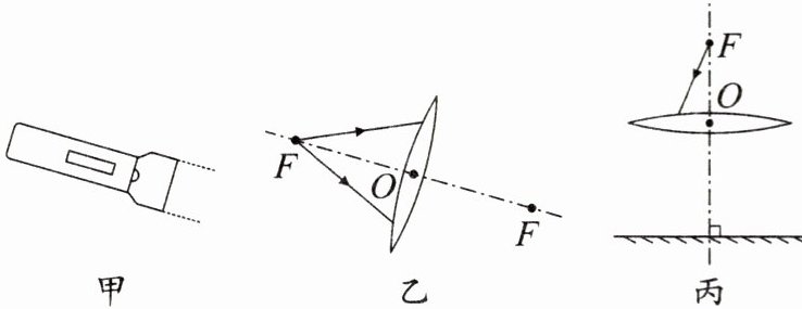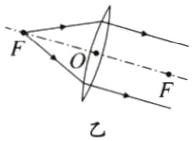 2. 在课后实践活动中,小明自制了一个如图甲所示的手电筒,他将小灯泡放在凸透镜的焦点处,请在图乙中画出光通过凸透镜后的光线。