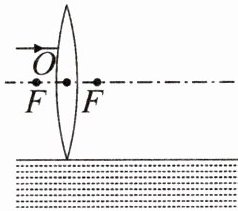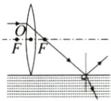 6. (2024 达州中考)一束平行于主光轴的光线,经凸透镜折射后在水面发生反射和折射,请完成光路图。