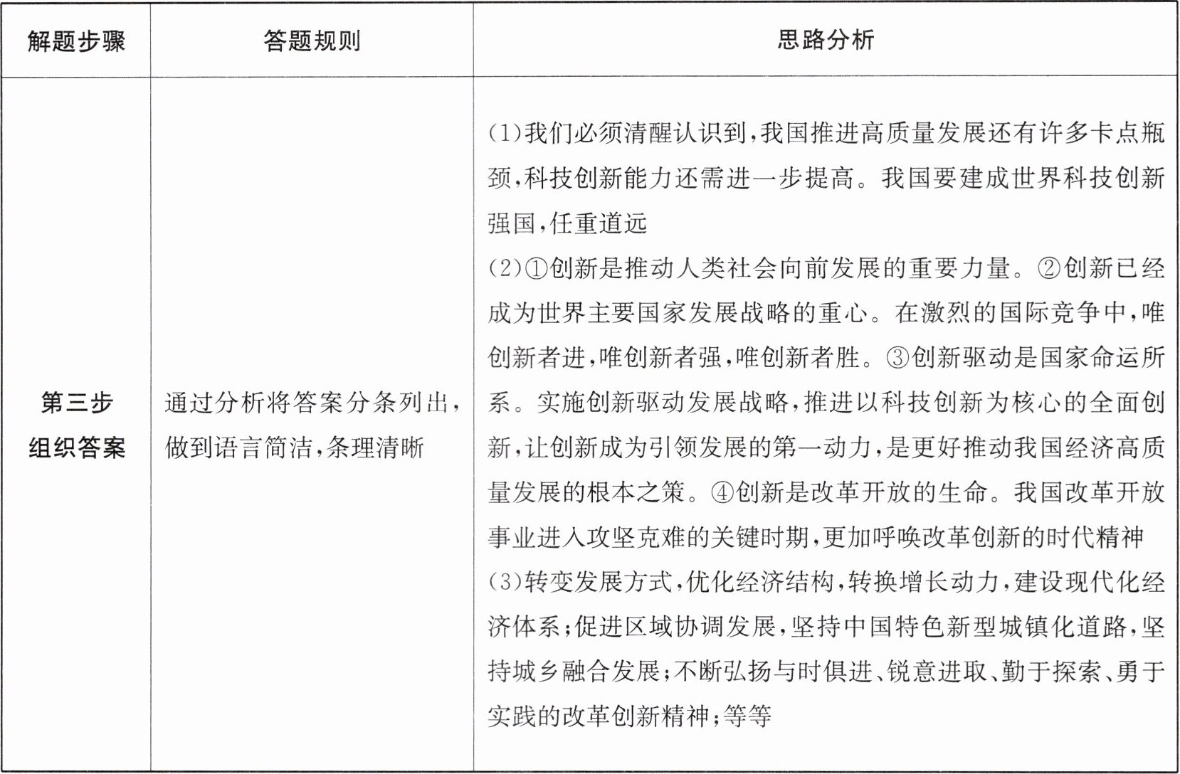 |第三步组织答案|通过分析将答案分条列出,做到语言简洁,条理清晰|(1)我们必须清醒认识到,我国推进高质量发展还有许多卡点瓶颈,科技创新能力还需进一步提高。我国要建成世界科技创新强国,任重道远