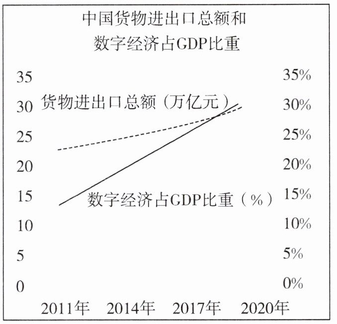 ①货物的进出口总额在持续增长 ②数字经济占GDP比重不断上升 ③科技创新对外依赖度居高不下 ④科技对经济发展的贡献率提高